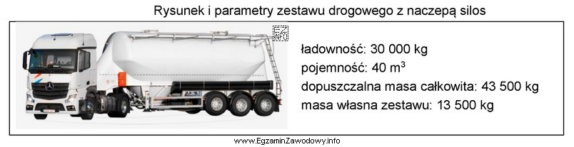 Ile minimum zestawów drogowych, przedstawionych na rysunku, należy użyć do przewozu 132 m3 cementu o gęstości 1,35 t/m3?