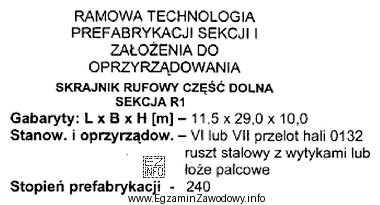 Zgodnie z załączonym fragmentem dokumentacji technologicznej do prefabrykacji dolnej części skrajnika rufowego jako oprzyrządowanie należy przygotować