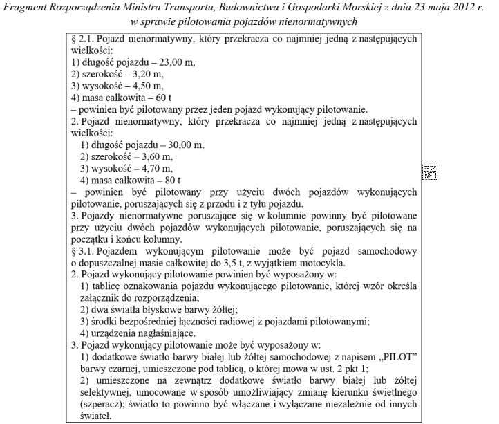 Na podstawie zamieszczonego fragmentu rozporządzenia, pojazd przekraczający długość 30 m, szerokość