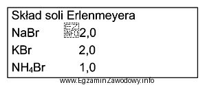 Ile gramów bromku amonu należy użyć do sporządzenia 200,0 g 10 % roztworu soli Erlenmeyera?