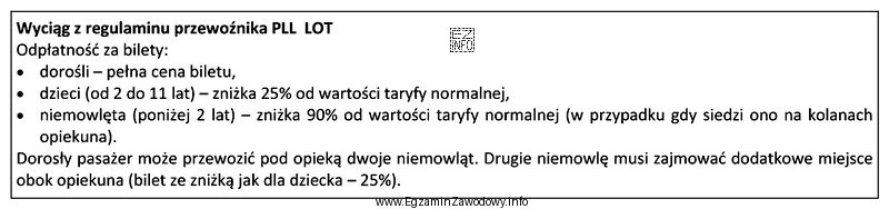 Ile % wartości normalnego biletu wynosi odpłatność za bilet dla jednego dziecka do 2. roku życia w Polskich Liniach Lotniczych LOT?