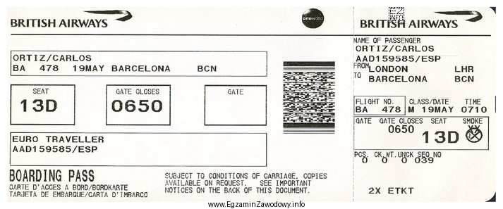 Zgodnie z przedstawioną na rysunku kartą pokładową pasażer Ortiz Carlos odbył podróż