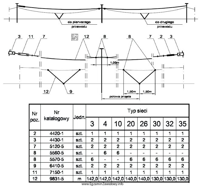 Do wykonania kotwienia środkowego w sieci typu 30 według schematu należy zastosować