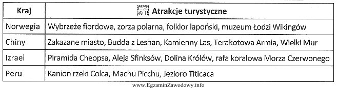 Przypisane w tabeli poszczególnym krajom atrakcje turystyczne nie występują