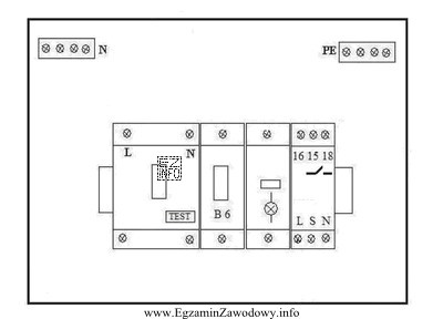 Wyłącznik różnicowoprądowy, wyłącznik nadprądowy, lampka kontrolna, przekaźnik bistabilny.