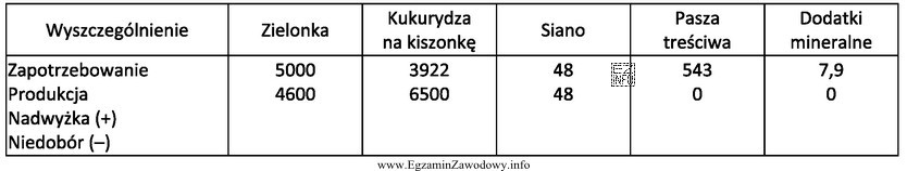Bilans paszowy przykładowego gospodarstwa (w dt) Wskaż paszę, dla której bilans paszowy jest zerowy.