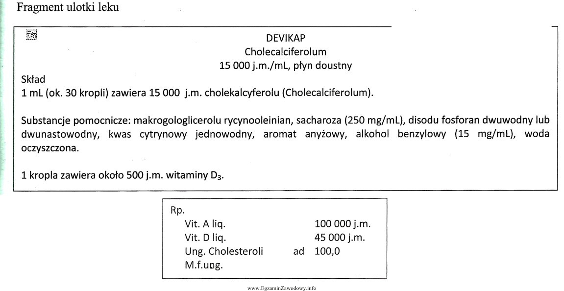 Średnia gęstość roztworu Devikap wynosi 1,10 g/mL. Oblicz, ile preparatu Devikap należy odważyć do sporządzenia leku recepturowego według zamieszczonej recepty z uwzględnieniem treści ulotki.