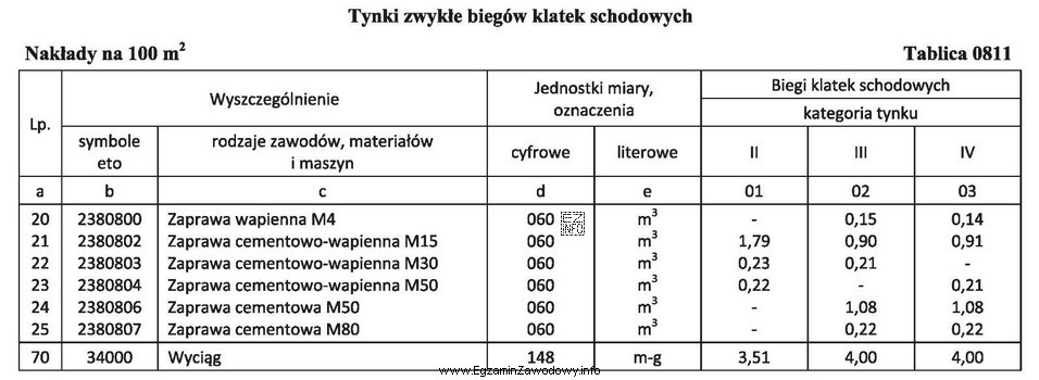 Na podstawie danych zawartych w tablicy z KNR oblicz, ile zaprawy cementowo-wapiennej M30 potrzeba do wykonania 25 m
