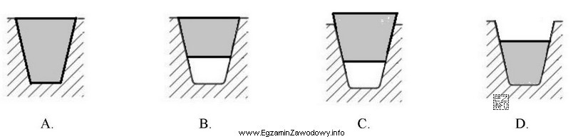 Na podstawie pokazanych przekrojów przekładni pasowych wskaż, która z przekładni ma prawidłowo dobrany pas klinowy.