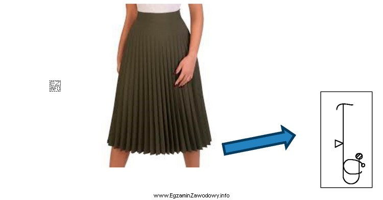 Dół spódnicy przedstawionej na rysunku jest wykończony obrębem z obrzuconym brzegiem podszytym ściegiem